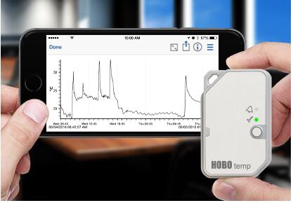 防潮HOBO記錄儀的溫度和相對濕度。 它們具有便捷的藍牙低功耗(BLE)數(shù)據(jù)下載和使用移動設(shè)備的記錄器設(shè)置。