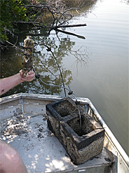 所有的記錄儀都附著在鋼筋樁上,使用不銹鋼軟管夾和扎帶將其錘擊并粘結(jié)到礁石中。