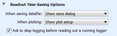 在讀出運行的記錄器之前要求停止記錄。當選中此復選框時,每次讀出仍在記錄數(shù)據(jù)的記錄器時,都會顯示一條消息。該消息詢問您是要停止記錄器還是讓它在讀取過程中繼續(xù)記錄數(shù)據(jù)。如果取消選擇此復選框,仍在記錄數(shù)據(jù)的記錄器將在讀出期間自動繼續(xù)記錄。