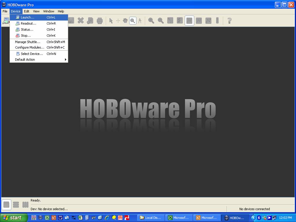 Data Logger啟動(dòng)完成, Shuttle 將顯示 “ Hobo Launched”