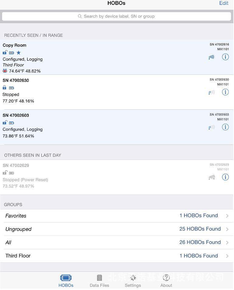 利用Onset為您精心開發(fā)的免費(fèi)HOBOmobile APP(可前往AppStore即可輕松下載http://appstore.com/hobomobile),您即可使用您的手機(jī)或平板電腦(如iPad)等移動(dòng)設(shè)備輕松訪問30m(實(shí)際使用距離會(huì)受設(shè)備功率和障礙物影響)范圍內(nèi)任何一個(gè)MX1101無線溫濕度記錄儀。并對其進(jìn)行設(shè)置,也能夠以圖形方式顯示數(shù)據(jù),還可以選擇將您的測量數(shù)據(jù)存儲(chǔ)到云服務(wù)器。使用的Onset的自由hobomobile應(yīng)用程序,你可以在圖表視圖數(shù)據(jù),檢查記錄儀運(yùn)行狀態(tài),配置警報(bào)通知,并共享數(shù)據(jù)文件。
